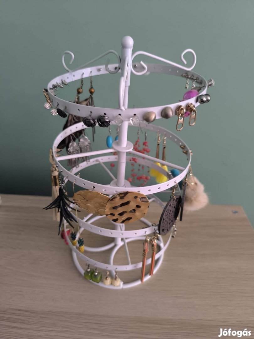Fehér, fém fülbevaló tartó állvány 36 pár fülbevalóval!