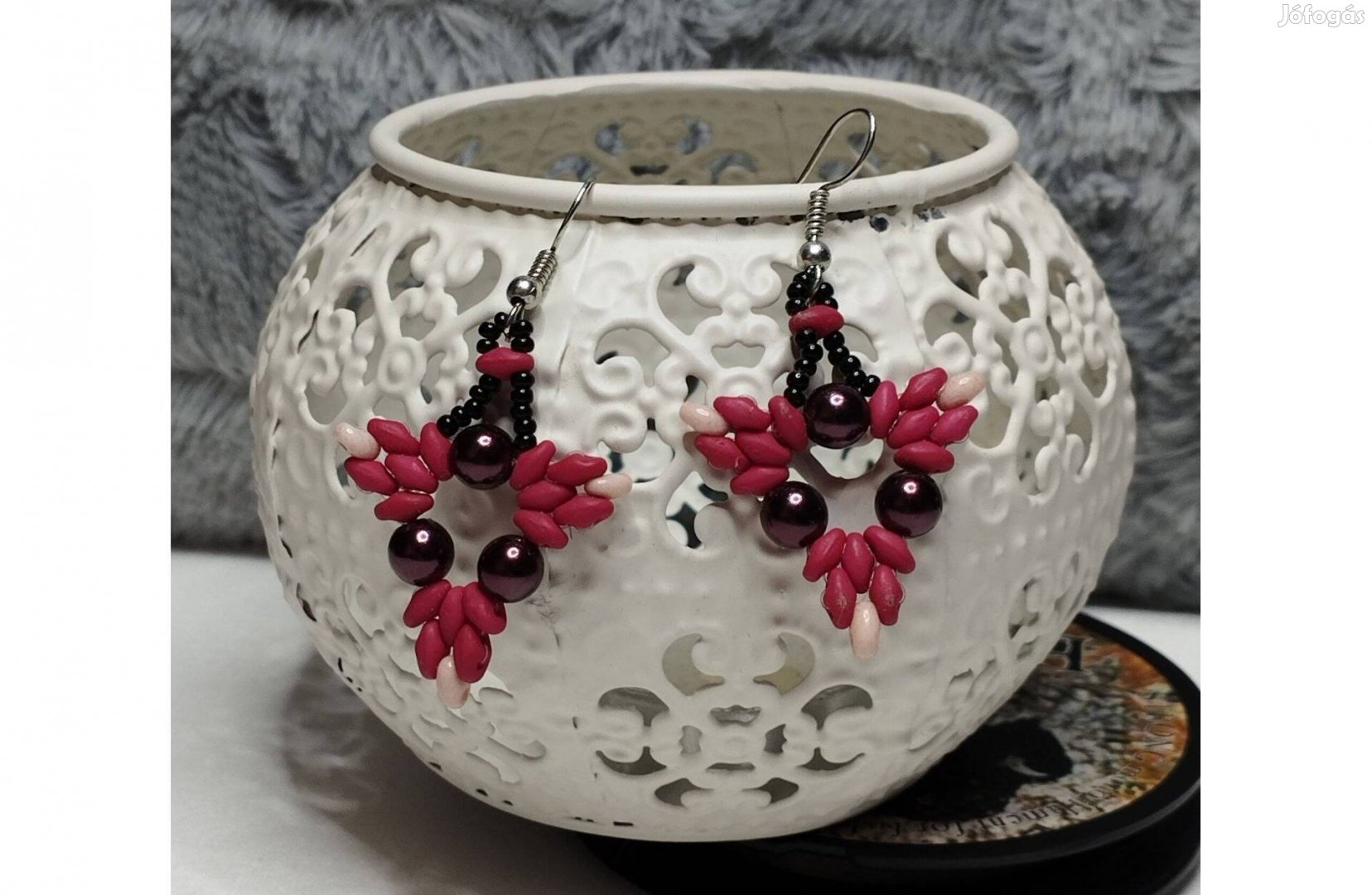 Fülbevaló ékszer bordó új