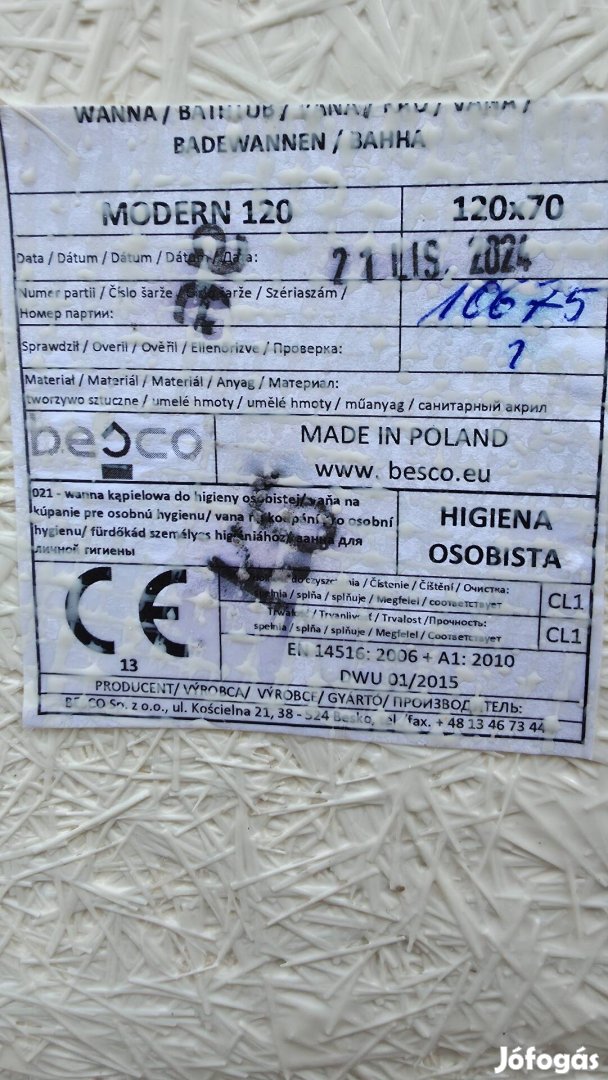 Fürdőkád 120x70 cm.