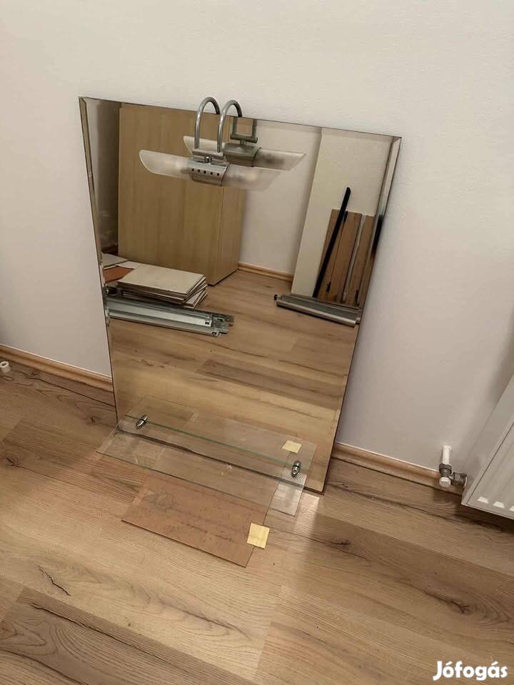 Tükör lámpával és egy üveglappal rajta ami tárolóként szolgál.