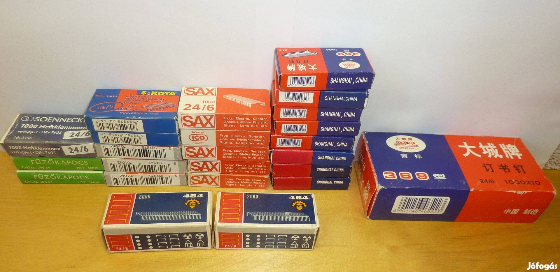 Új, 24/6-os fűzőkapocs, eredeti dobozukban, különféle márkájúak, 35 000 db, eladó!