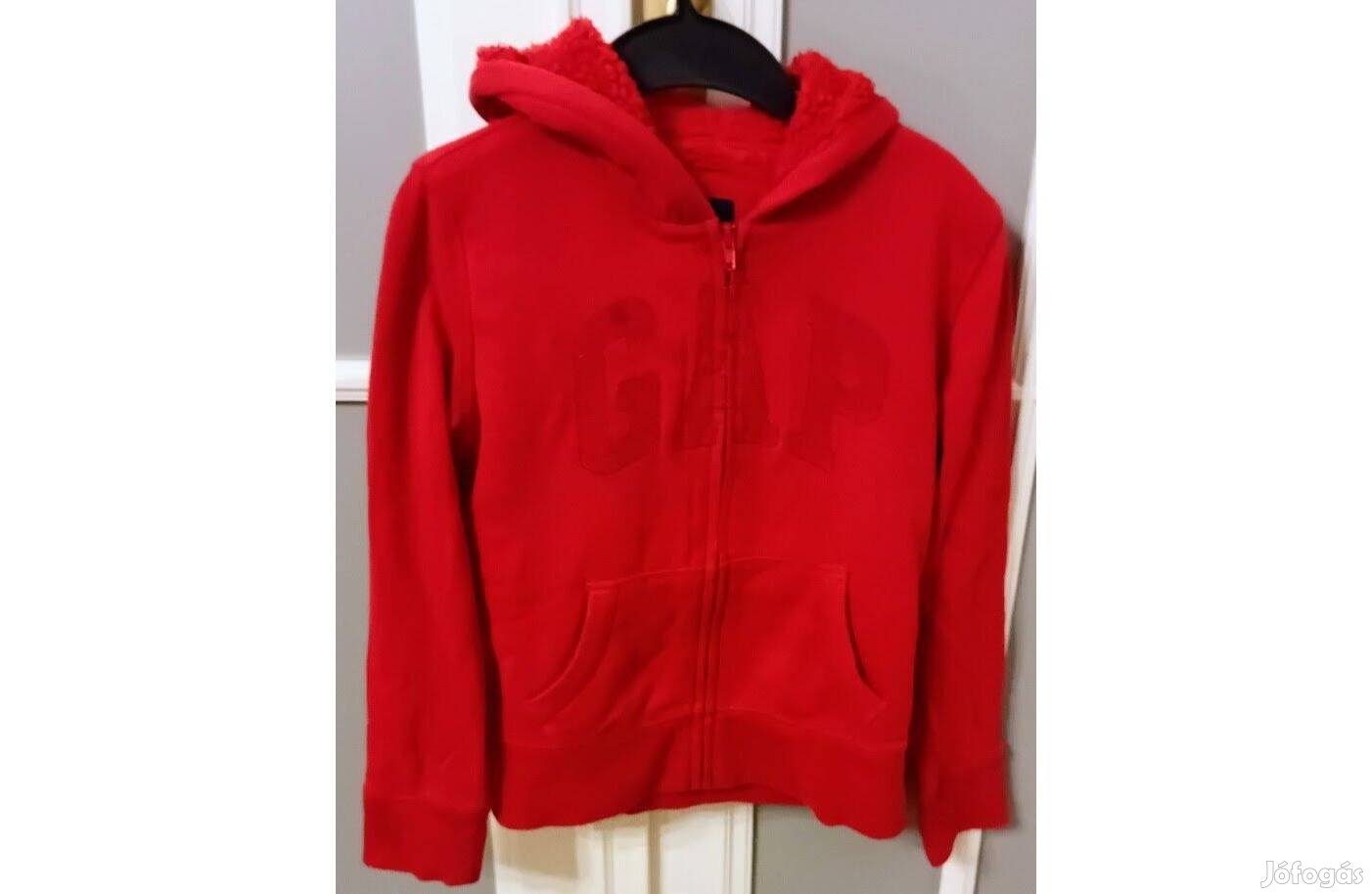Eladó egy használt, kiváló állapotban lévő piros színű, lány kapucnis GAP kids márkájú hosszú ujjú pulóver. éret: 10-11 éveseknek