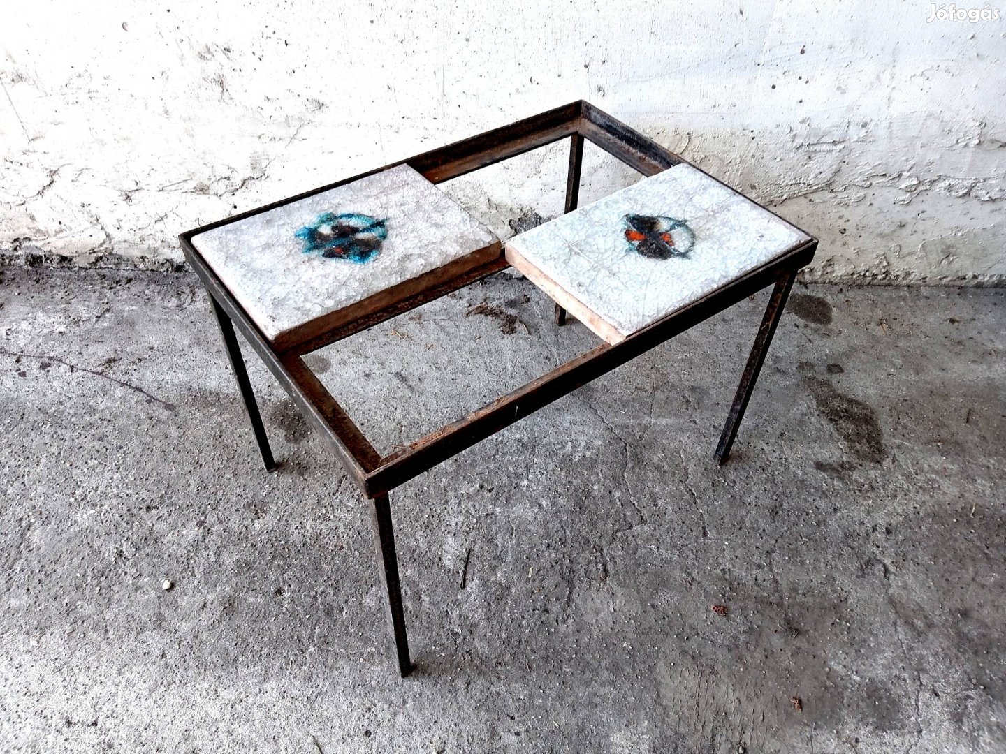 Rendrakás miatt eladó hagyatékból kovácsoltvas kisasztal ,dohányzó vagy virágtartó ,2db csempéje van meg, vagy ezt kéne pótolni ,vagy fát beleszabni, enyhén rozsdás , postázni nem tudom Gábor