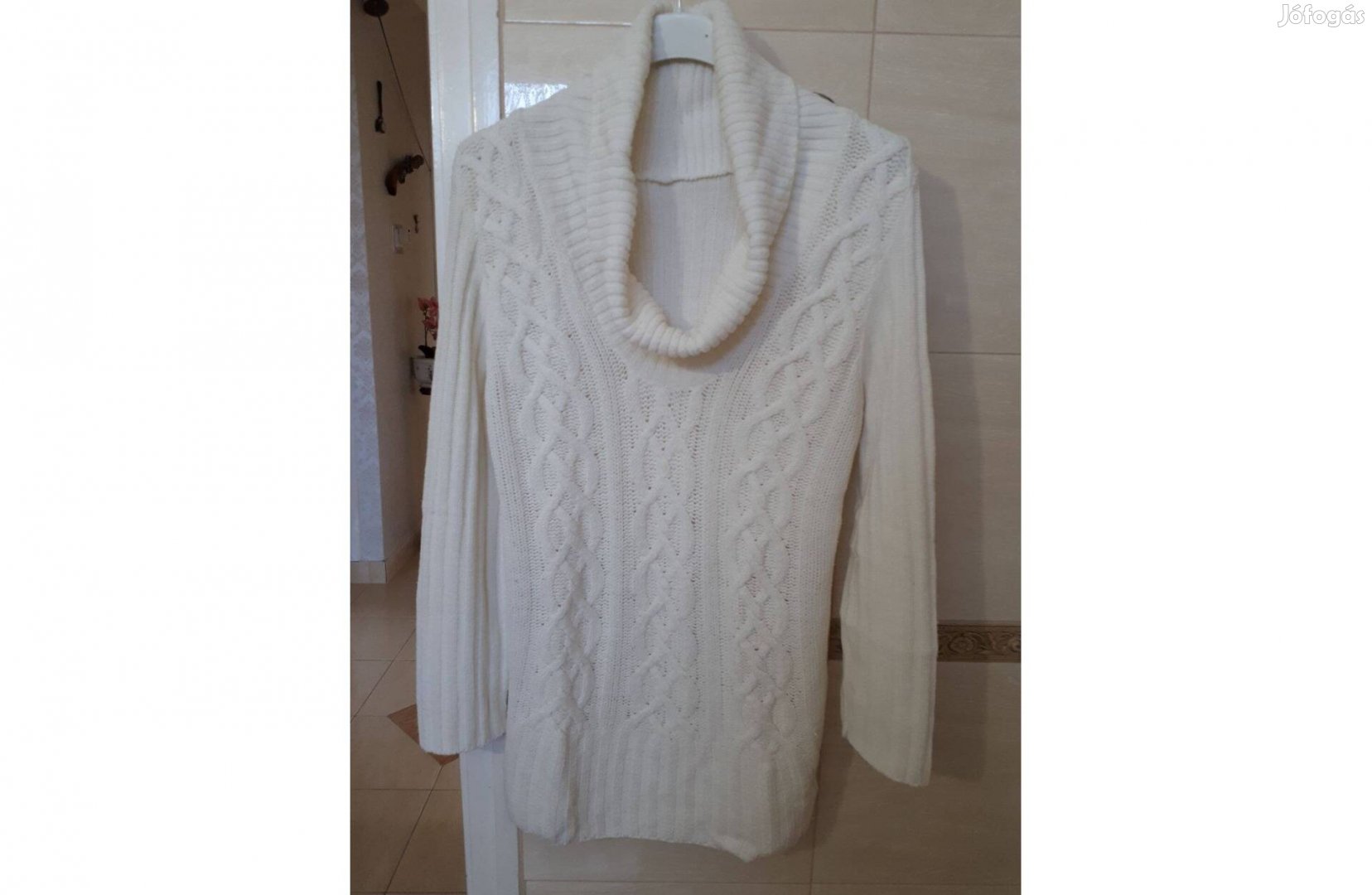 Garbó, fehér, mini ruhaként is használható, szép kötéssel eladó