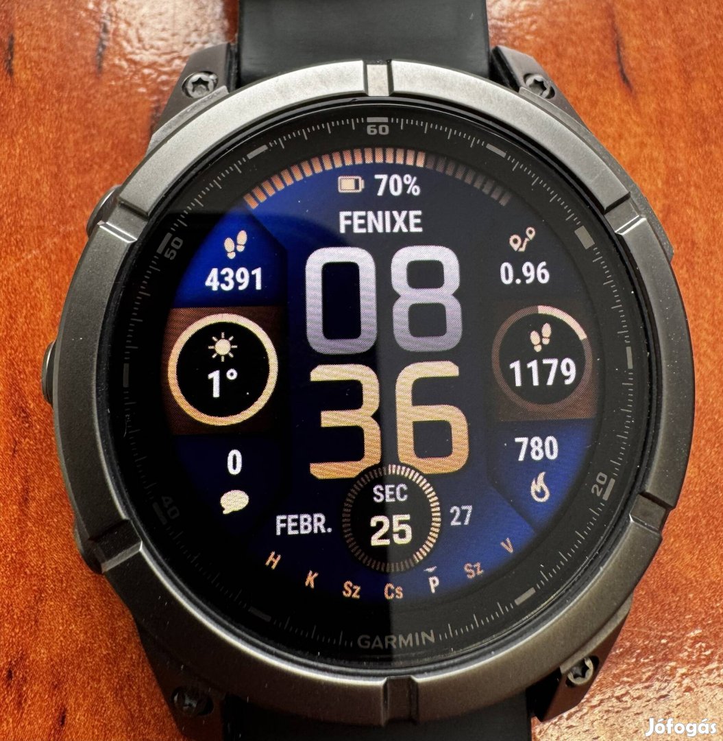Garmin Fenix e 47mm, fekete, 2025.08. hóban vásárolt, hibátlan állapotú, 2 év garancia, doboz, számla, töltő van es 2db csere szíj