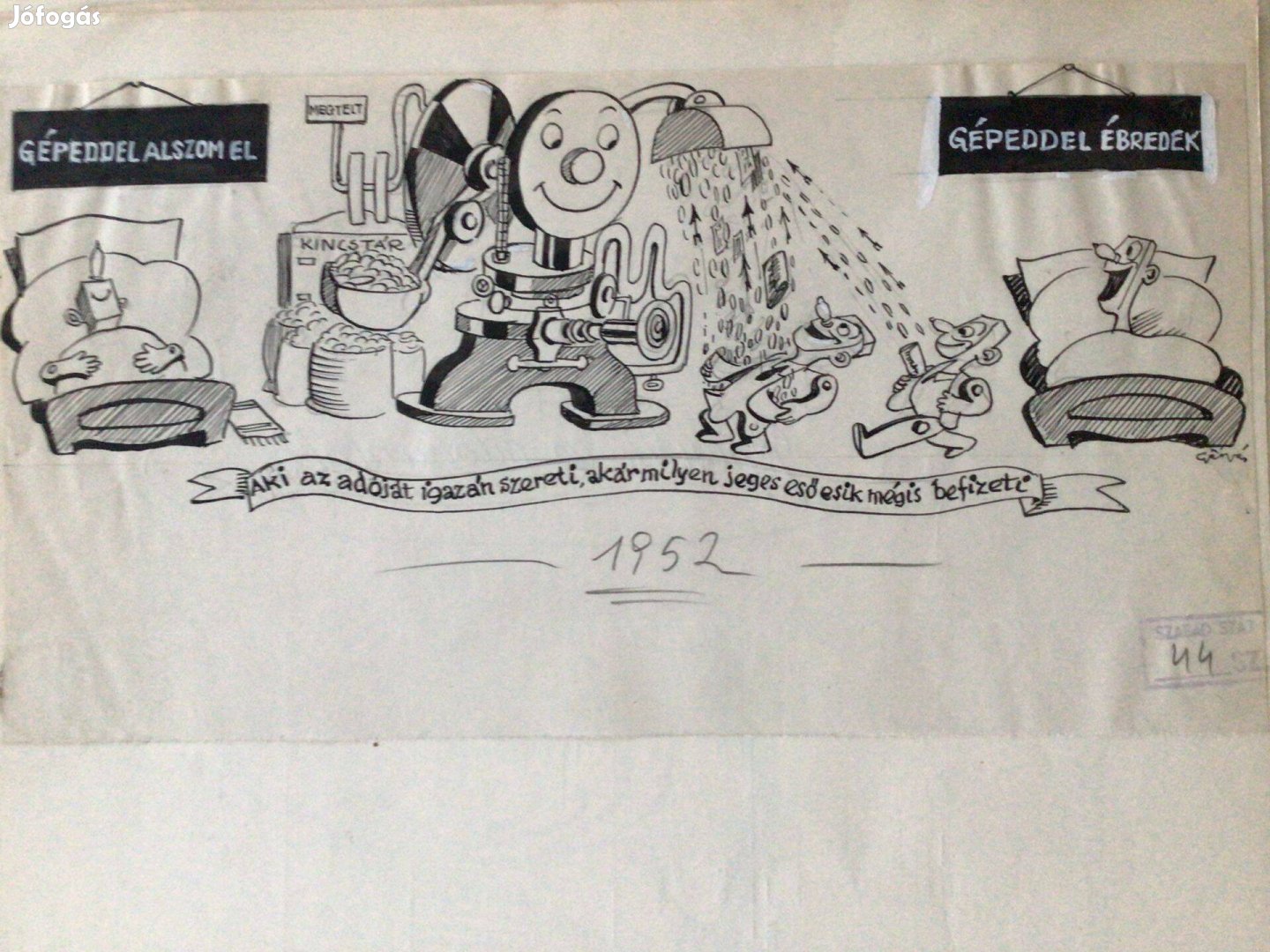 Gáspár Antal eredeti karikatúra rajza a Szabad Száj c. lapnak 14,5 x 28 cm