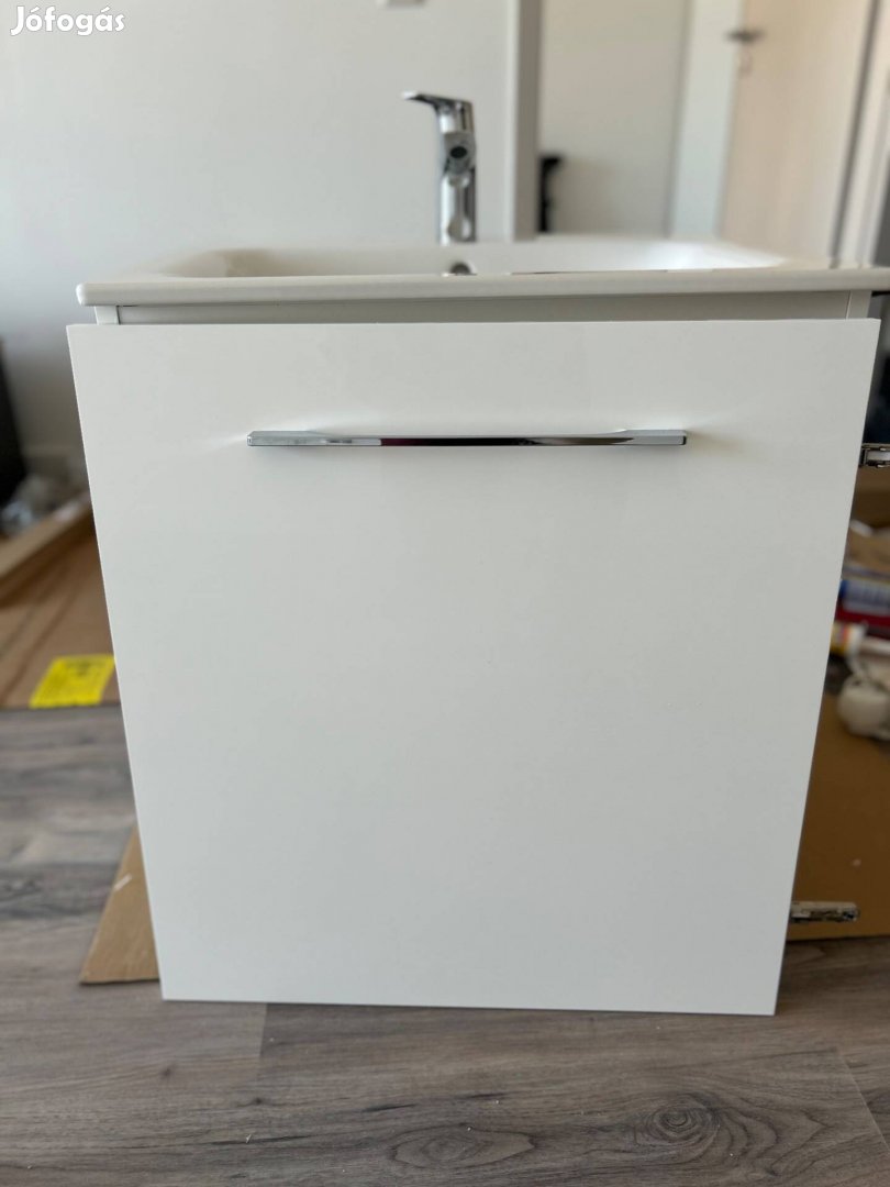 Eladó egy Geberit Selnova Square mosdószekrény keskeny peremű mosdóval, valamint egy Grohe Bauedge mosdó csapteleppel, új építésű lakásból leszerelve.