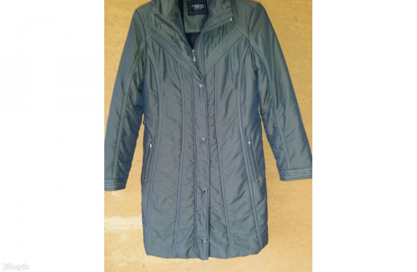 Eladó újszerű 36-os, de inkább 38-as méretú kabát. Méretek: mellbőség 96 cm, csípőbőség 102 cm, hossza 93 cm, ujjhosssz:62 cm.
