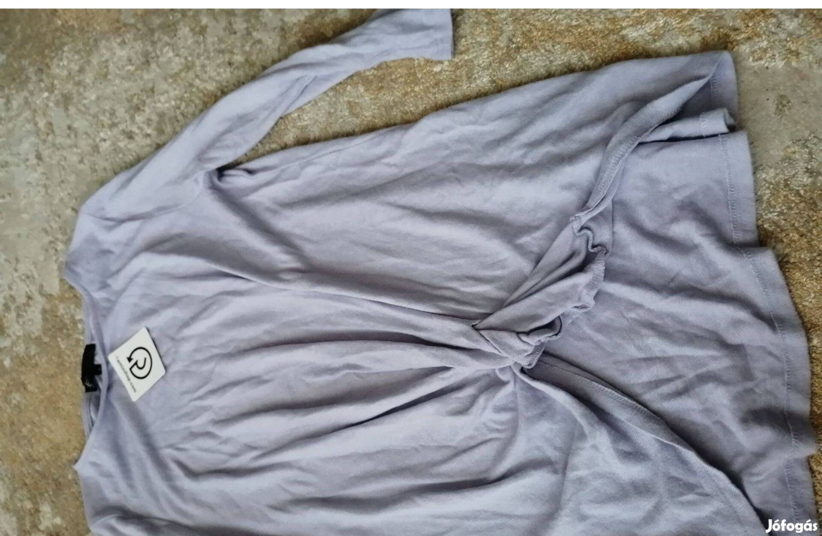 Orgona színű elején csavart pihe puha pulóver háromnegyedes ujjal.
