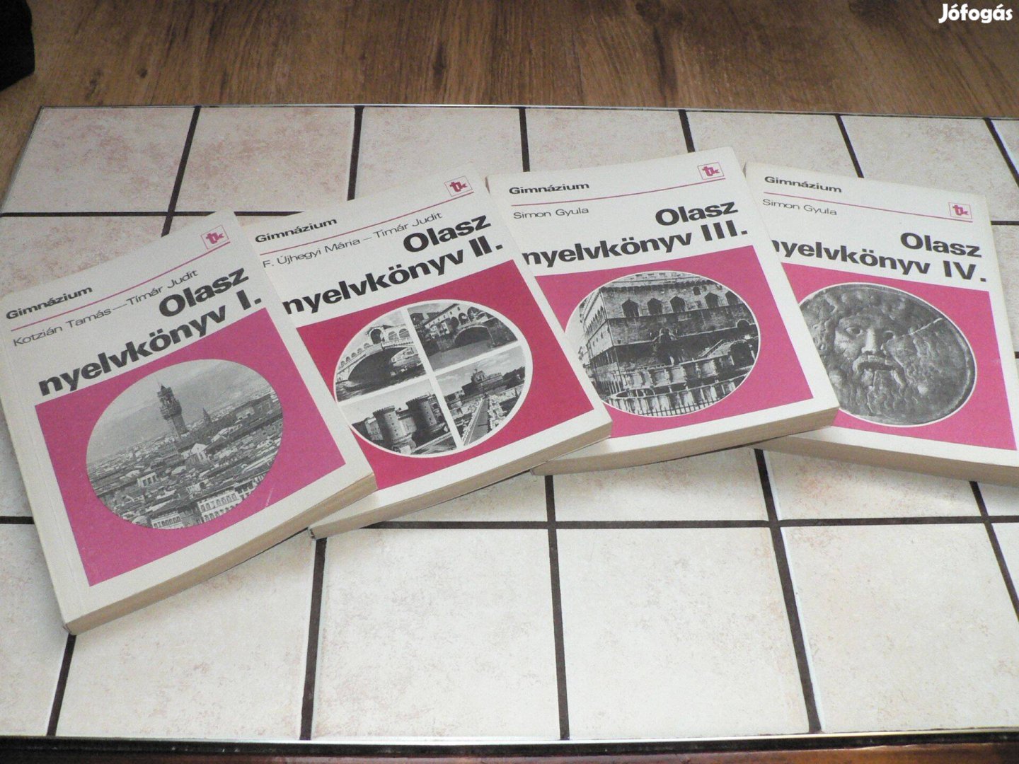 Eladó az alábbi képeken látható régi gimnáziumi olasz nyelvkönyv-tankönyv sorozat. A 80-as években és a 90-es évek elején ezekből a könyvekből tanították Magyarországon a gimnáziumokban az olasz nyelvet. Az első és a második kötethez hanganyag is készült orsós magnetofonszalagokon a hajdani Tanért jóvoltából. A III. és a IV. kötethez nem készült hanganyag. Ennek részben didaktikai részben anyagi oka van. Didaktikai okokból kifolyólag a harmadik és negyedik kötet szerzője szerint a nyelvtanulók a kiejtést már elsajátították az I. és a II. kötet elvégzése során (hangfelvétel használatával), így a további két könyvnél már feleslegesnek tartotta a hangfelvétel megjelentetését. Másrészről a rendelkezésre álló szűkös anyagi feltételek sem tették volna lehetővé további hangszalagok kiadását.