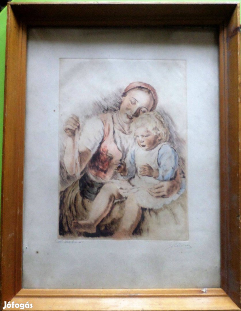 Glatz Oszkár: Anya gyermekével (rézkarc)