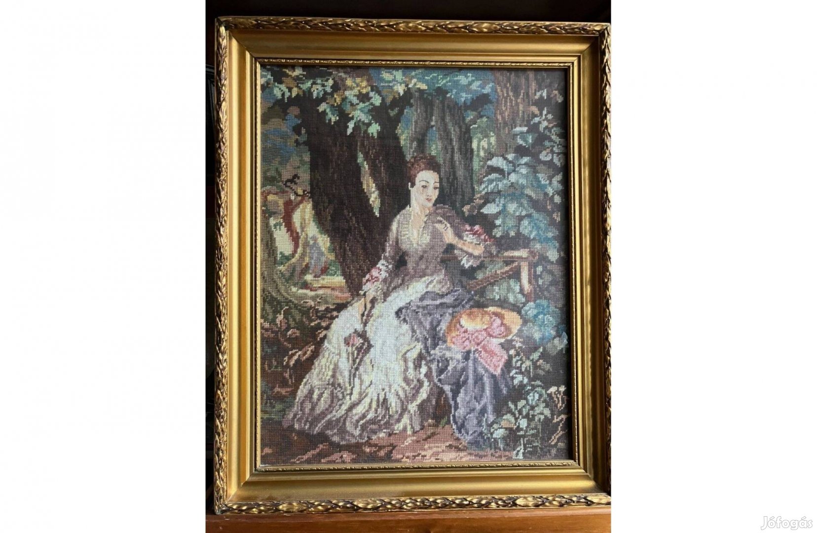 Gobelin kép (keret méret: 65×53 cm, kép méret: 55×43 cm) sérülés mentes, korhű hangulatú eladó. Átvehető a XVII.kerületben.