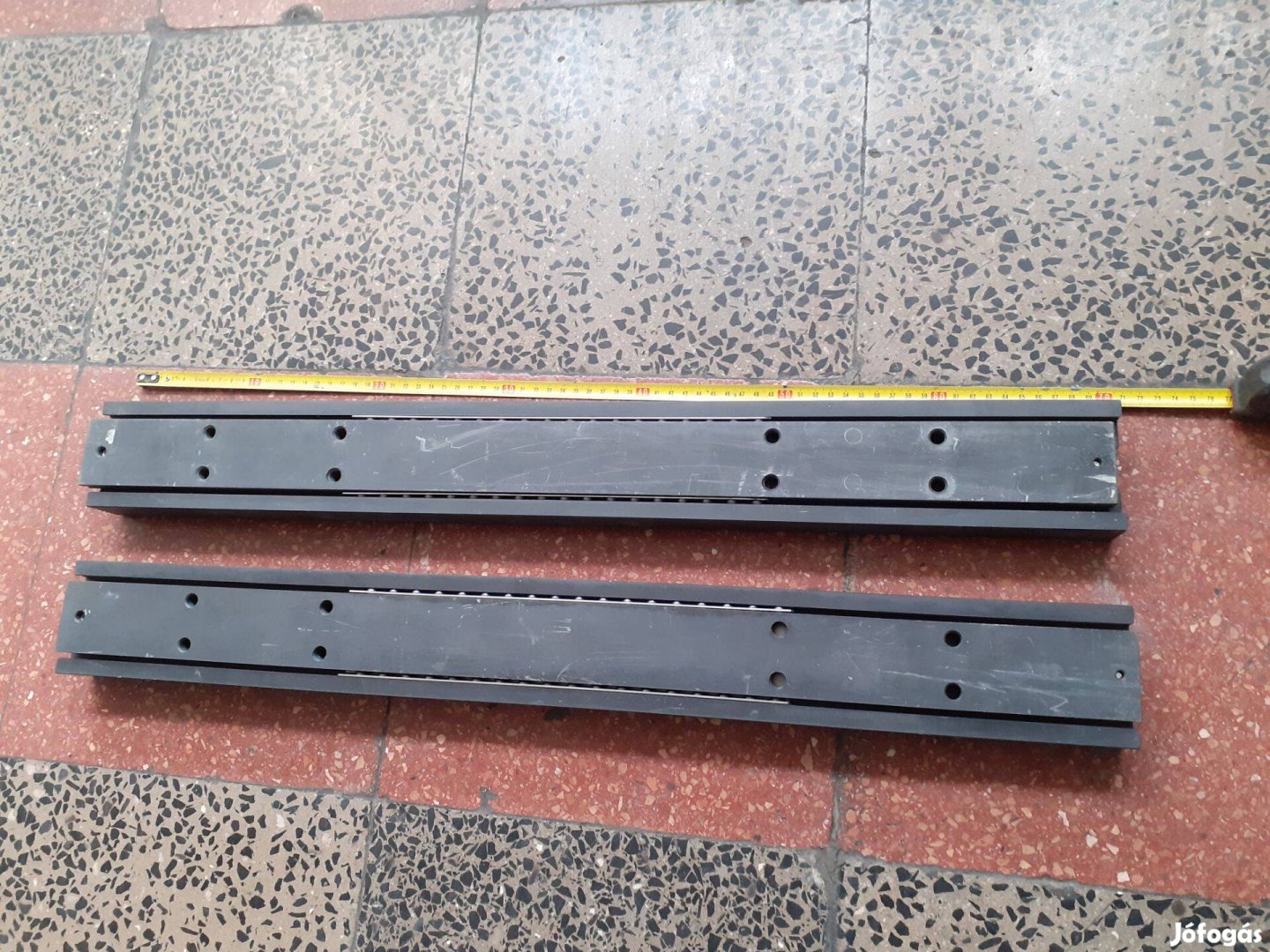 Eladó egy pár, használt, masszív 80X35X700/1400mm kétoldalra szétcsúszó, golyós sin. A pár 20000Ft
