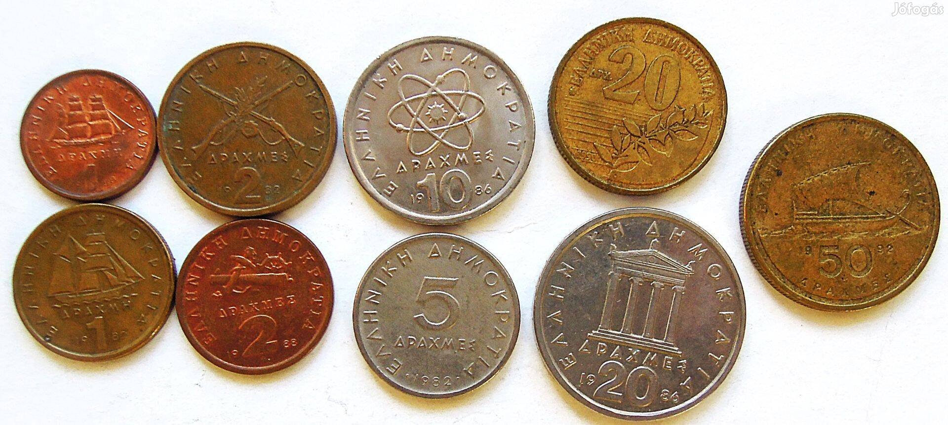 Görögoszág Drachma 9 db fémpénz érme csomag.