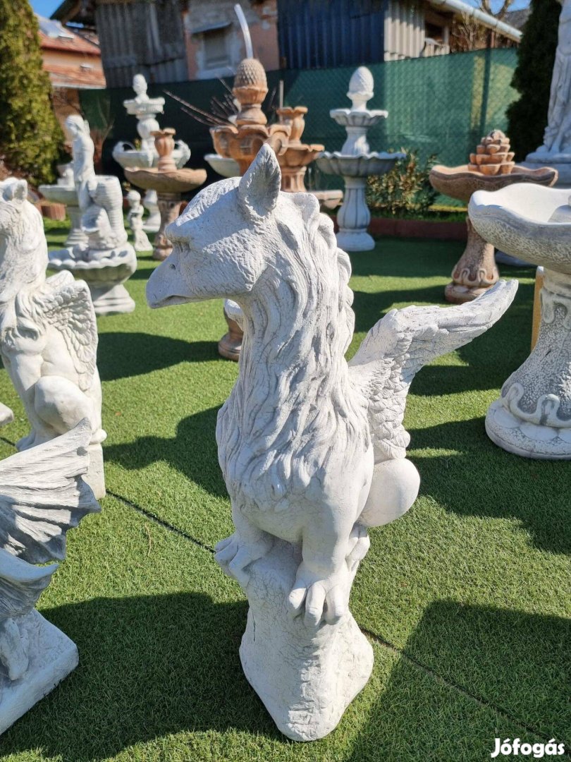 Különleges griff (sas és oroszlán alakú mitológiai lény) kerti szobor, amely erőt és védelmet jelképez. Tökéletes választás kertbe, teraszra, bejárathoz vagy kerti dekorációnak, igazi figyelemfelkeltő dísz.