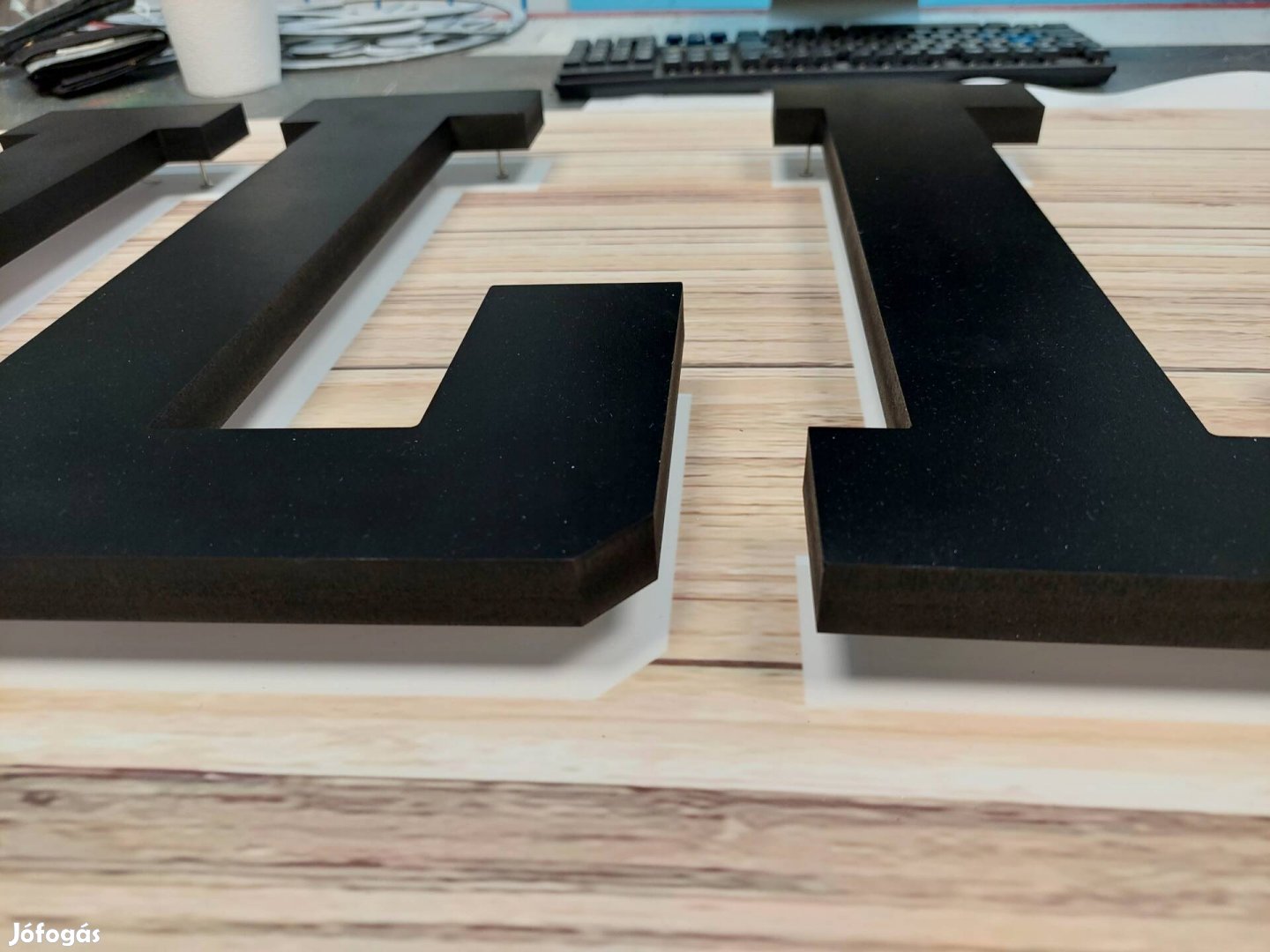 Fekete 2cm vastag,piros magas fényű LED-el szerelve, hátrafelé világít betűk 2cm-es távtartókkal 3mm vastagságú alumínium kompozit lemezre szerelve.12voltos adapterrel működik. A betűk magassága 40cm a tábla méretei:156cm×62cm.Újonnan féláron eladó.