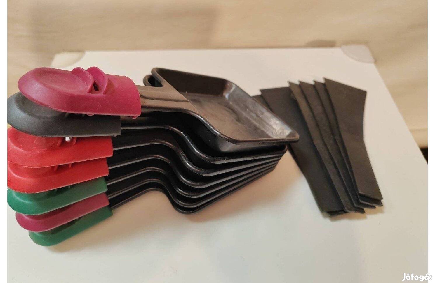 Raclette grillsütőhöz 7 db. tapadásmentes bevonatú kis serpenyő + 6 db. lapát.