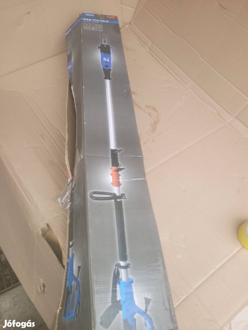 o Teleszkópos vezetőrúd (a fűrész hossza, ha a nyél teljesen ki van húzva: 2,9 m; becsült kinyúlás a talajtól legfeljebb 5 m)