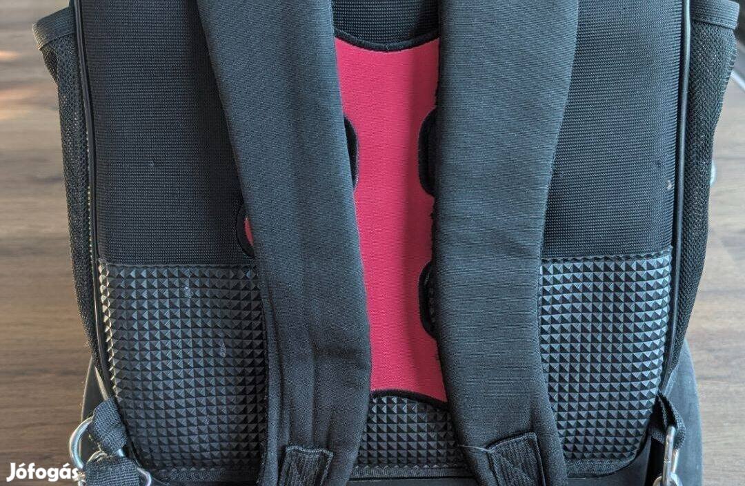 A táska többi része (cipzárak, belső rekeszek, merev váz) szép állapotban van.