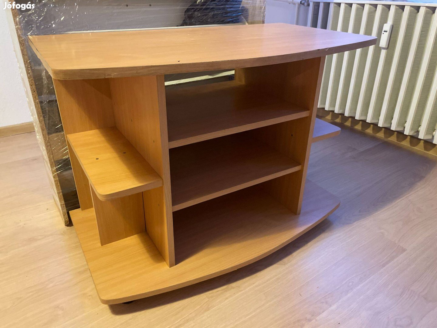 Eladó egy masszív, görgős TV szekrény bükk színben.