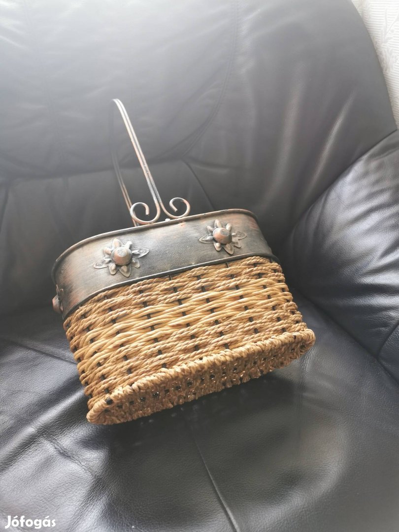 Eladó egy használaton kívüli sérűlésmentes gyékény kosárka bronz díszítéssel.