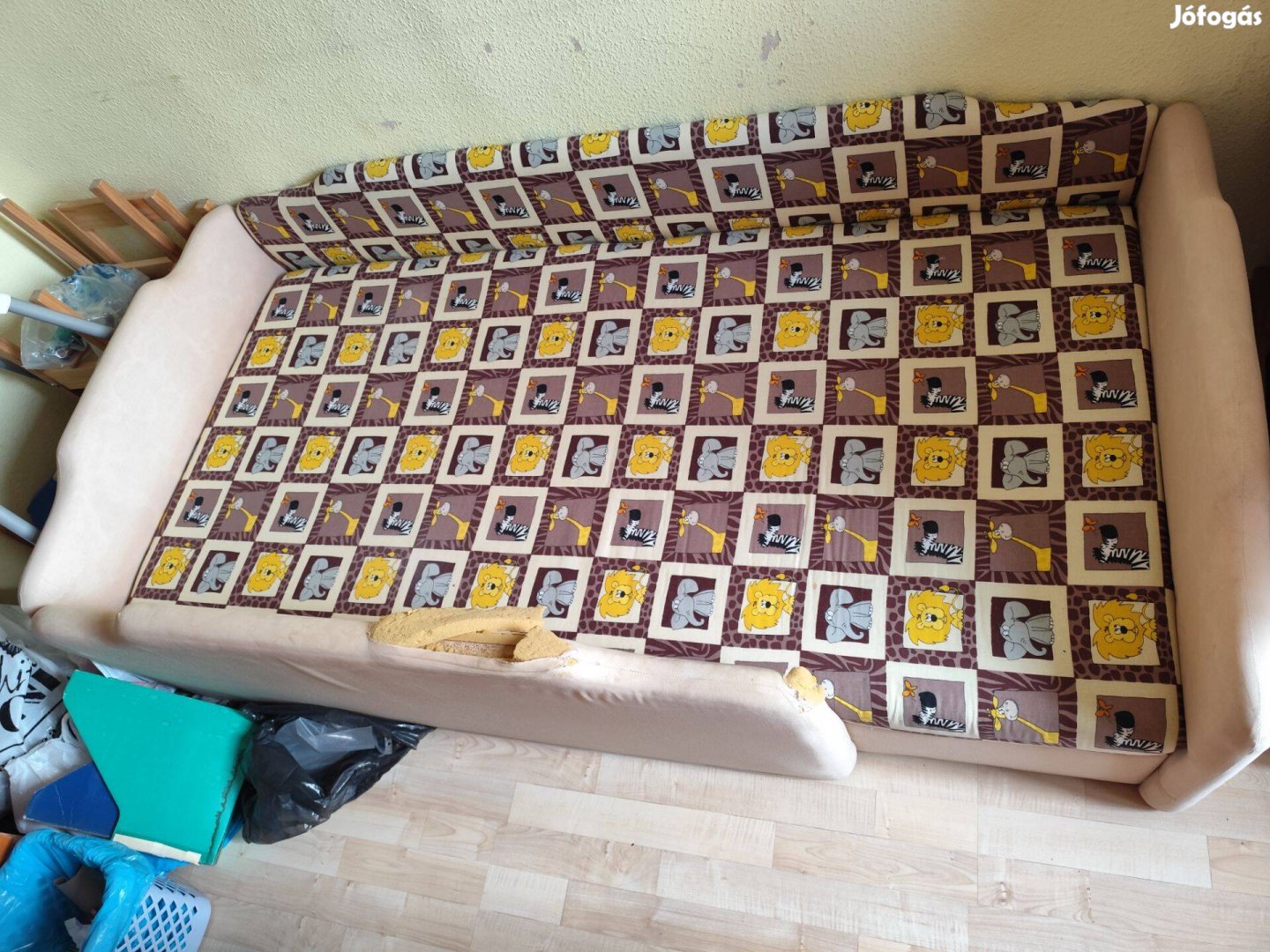 Használt, ágyneműtartós gyerekágy, a matrac minősége nagyon jó, kényelmes. Oldalán szakadás található.