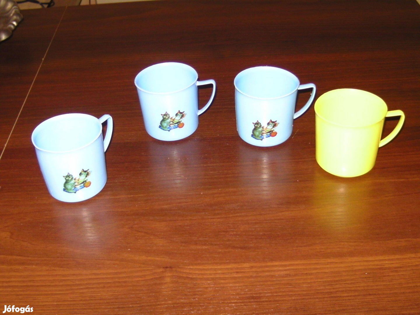 Eladó a képen látható régi gyerek műanyag füles pohár, 7 cm magas, 7 cm átm. 1.000, - Ft/db, személyes átvétel az M3-as metró vonalán (Határ út-Köki terminál), de postázom is.