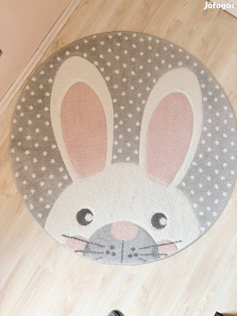 Eladó a képen látható ovális gyerek nyuszis szőnyeg.