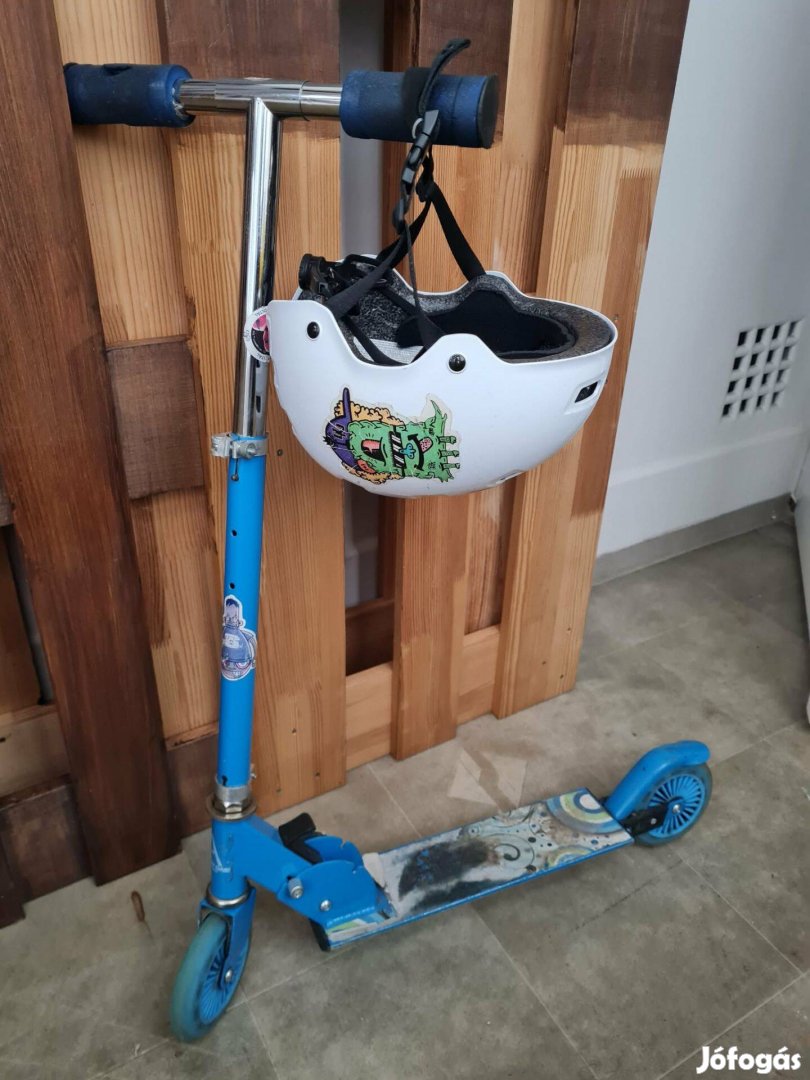 Használt, de működő roller és bukósisak eladó, fiús matricákkal. Kormányon a szivacs szakadt, de azt lehet javítani, cserélni, működést nem befolyásolja, lásd fotón.