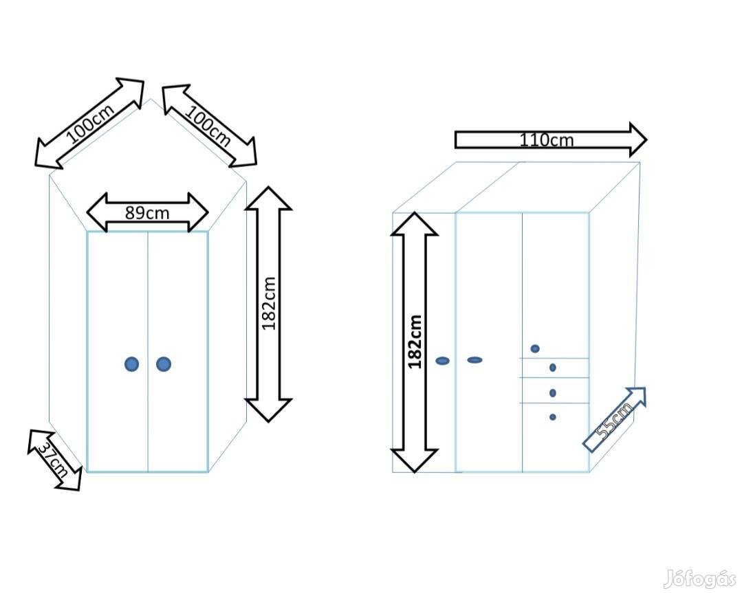 Eladó használt, 2 részes Brendon gyerekszekrény, a képeken látható állapotban. A szekrény szétszerelt állapotban van.