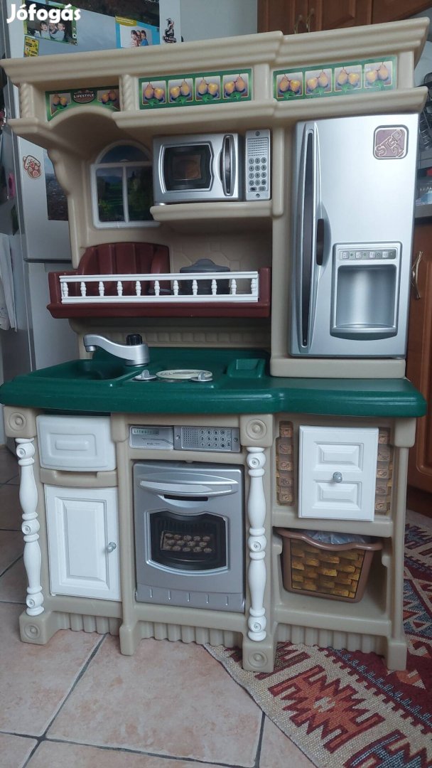 Lányom kinőtte játékait! Profi USA gyártmányú, STEP2 Company tipusú gyermekkonyha eladó. Háromszor 2 db. ceruzaelemmel müködik a mikrohullámú sütő, az elektromos sütő és a fenti sütő (a fenti sütő 2 hangot és fényjelzést ad főzés/sütés közben). Masszív, (kb. 15 kg.), nem mozog, nem borul fel. Méretek: 105x72x35 cm. Elméletileg szétszedhető, én nem próbáltam. Garantáltan fog örülni neki új gazdája! Kizárólag személyes átvétellel, a félreértések elkerülése érdekében.