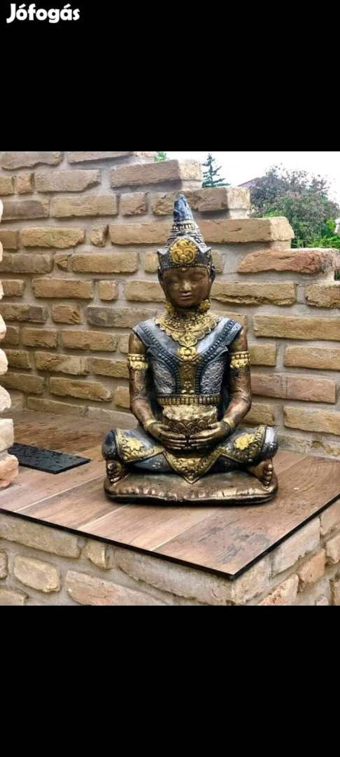 Rendkívül gazdagon díszített ez a thaiföldi templomőr szobor: sok dísszel díszített köntöse térdig ér, nyakát művészien megtervezett lánc díszíti. Ezek a templomőrök a thaiföldi buddhista hagyomány szerves részét képezik. Ez a 80 centiméter magas Buddha-szobor nem hiányozhat a távol-keleti hangulatú kertekből.
