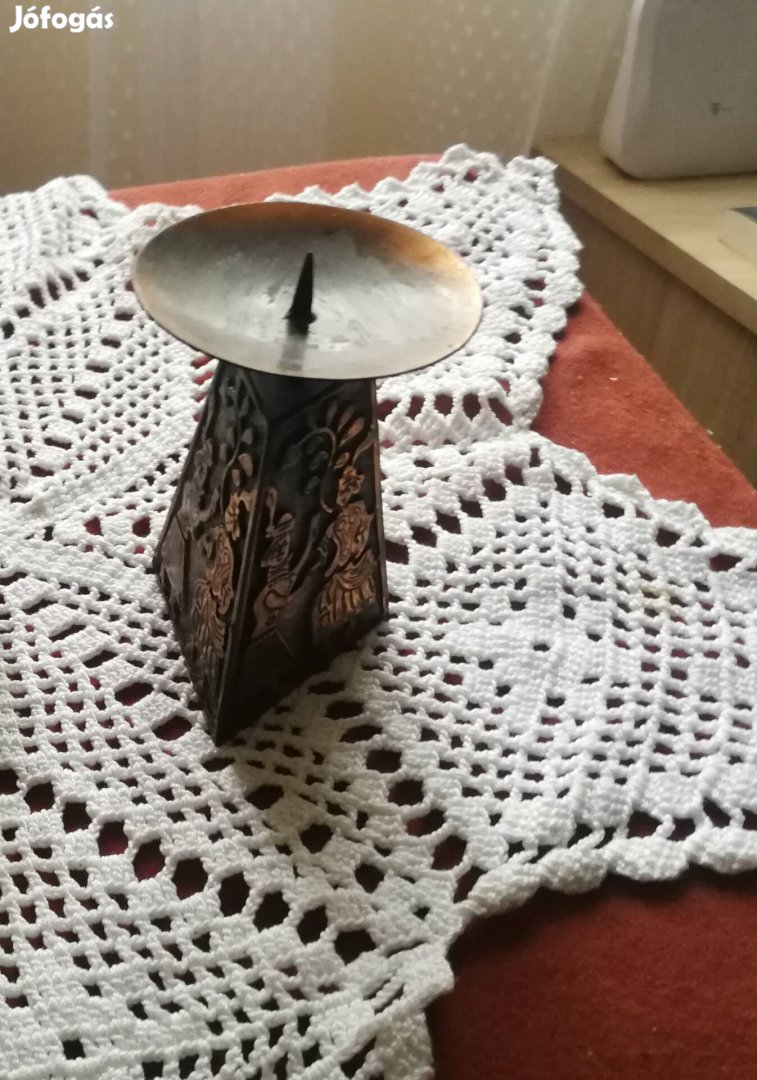 Gyertyatartó tömör vörösrézből. Egyiptomi hieroglifákkal díszítve.