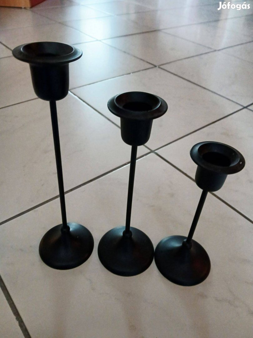 3 db fém fekete gyertyatartó, kb 20-30 cm