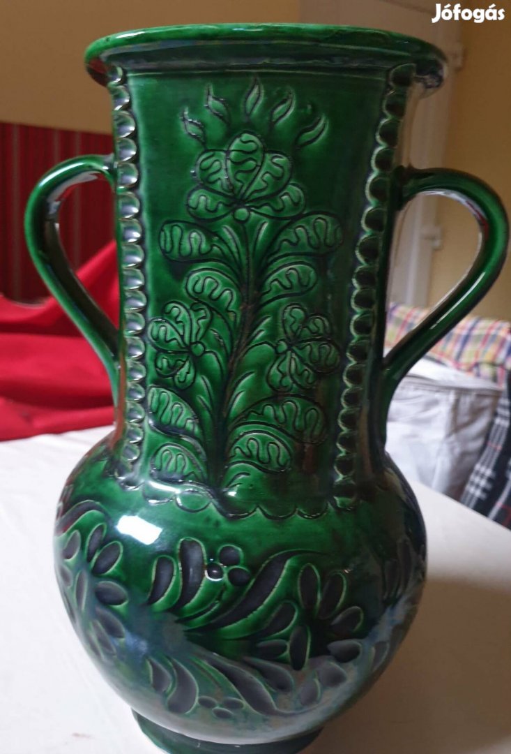 Hibátlan állapotban van, nagyméretű, gyönyörű népművészeti motivumokkal díszített, 2 füles, számozott.