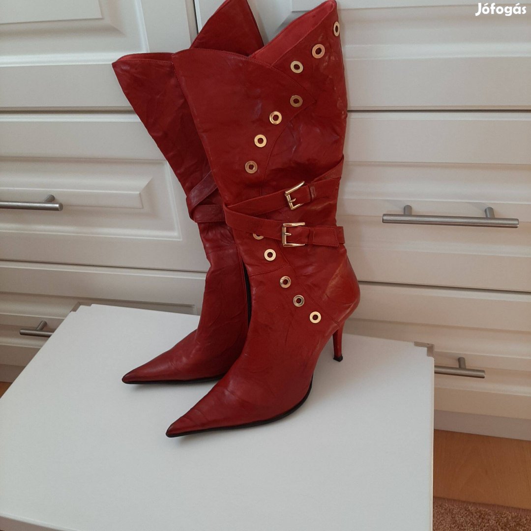 Gyönyörű, nagyon különleges, valódi bőr piros csizma ,