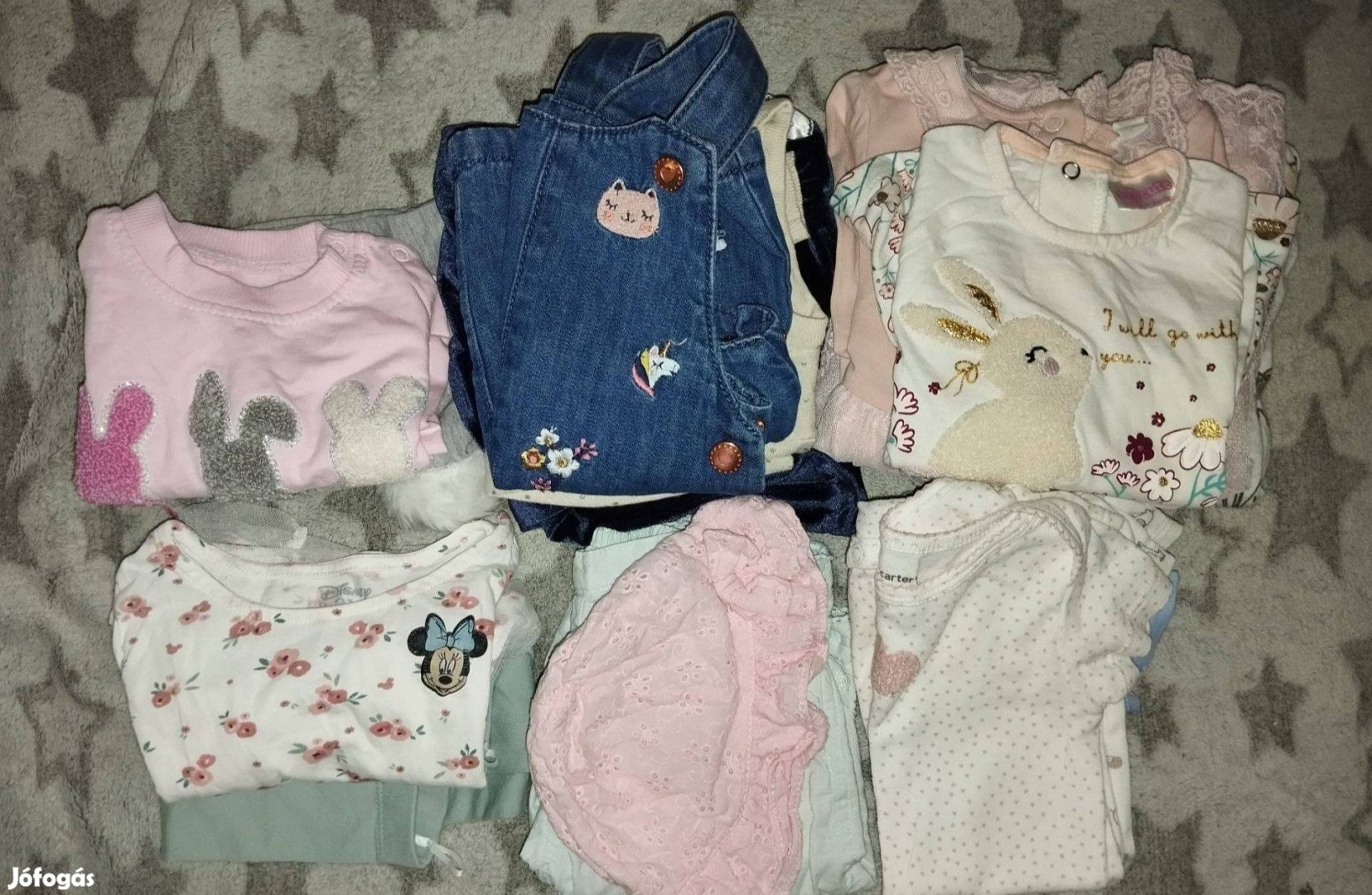 Eladó a képen látható üde, tavaszcsalogató ruhacsomag 74-es méretű kislánynak, nyuszival, szívecskével, virágokkal, meg minden jóval. A ruhák szép állapotúak, keveset, vagy egyáltalán nem használtak, általam ismert hibájuk nincs.