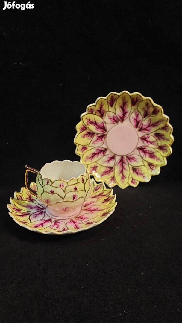 Gyönyörű antik, festett porcelán csésze és alj
