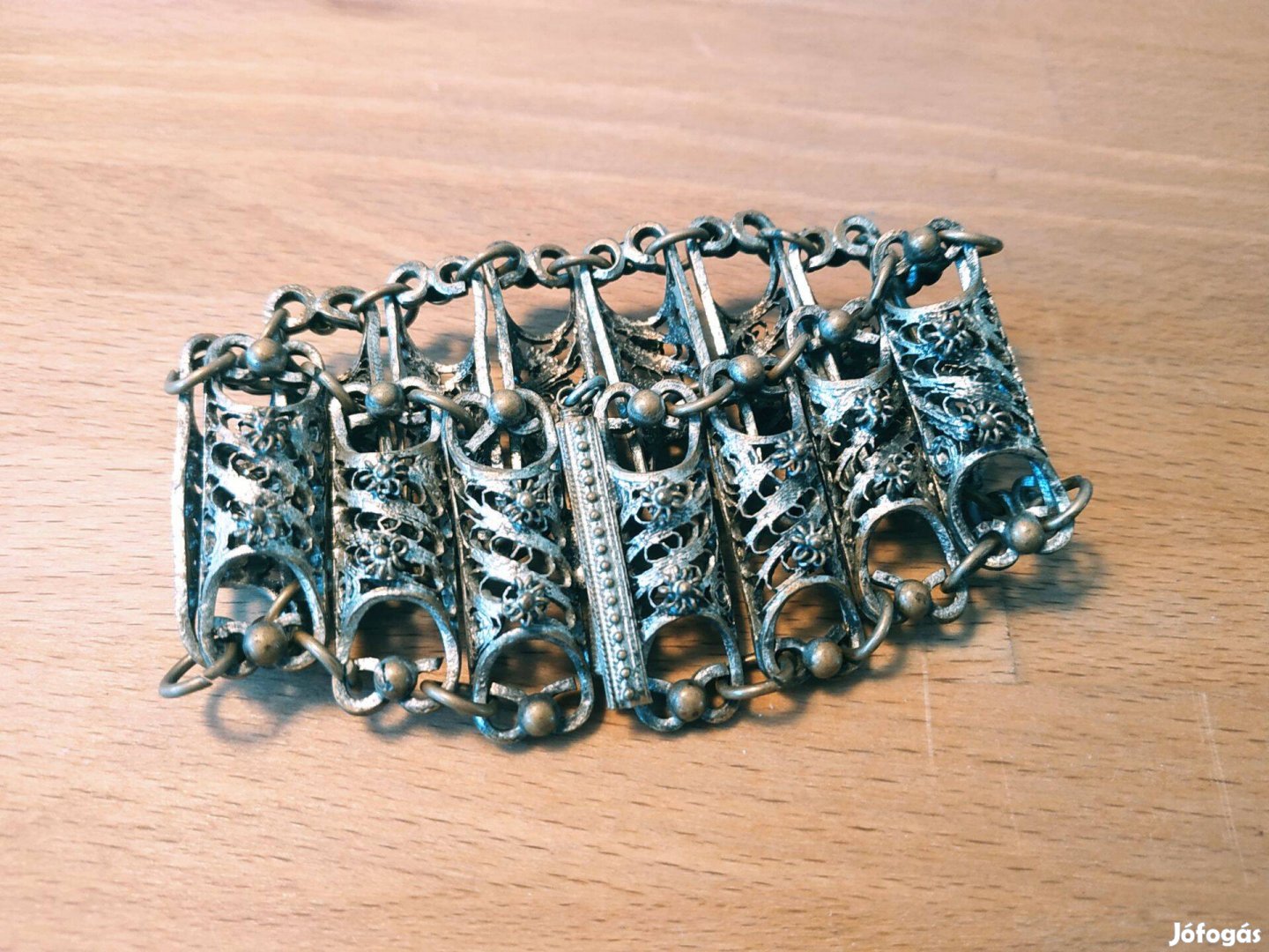 Gyönyörű antik, míves, domború mintájú fém karkötő (19x3,5cm)
