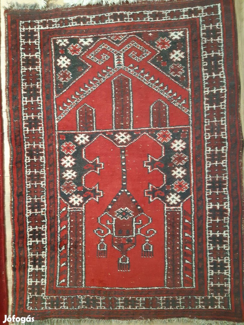 Gyönyörű kézi csomózású piros ima szőnyeg, szép állapot 120 x 86
