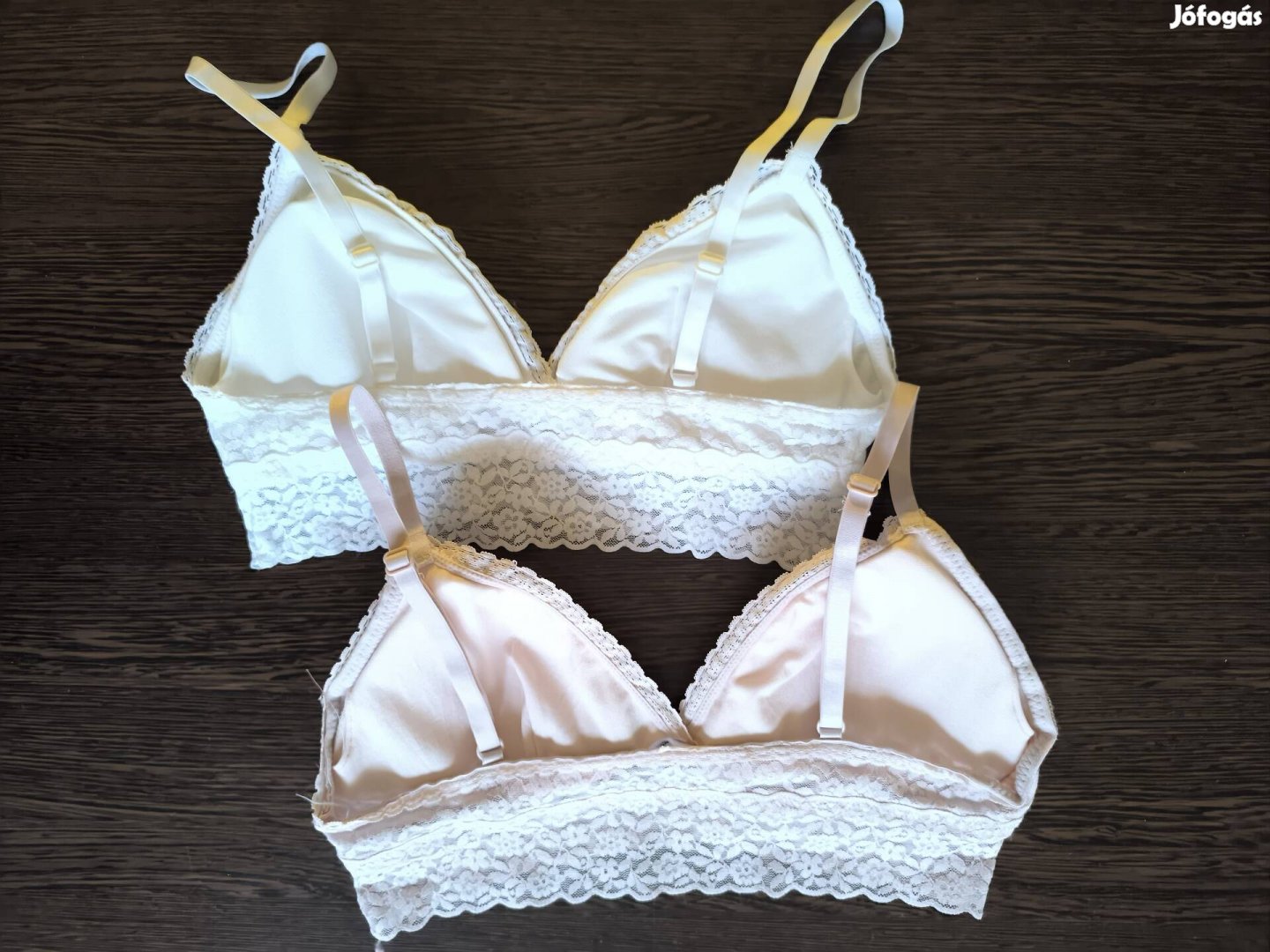 Csak átmosott, de nem viselt, M méretű csipkés, belebújós H&M melltartó, fehér és rózsaszín.