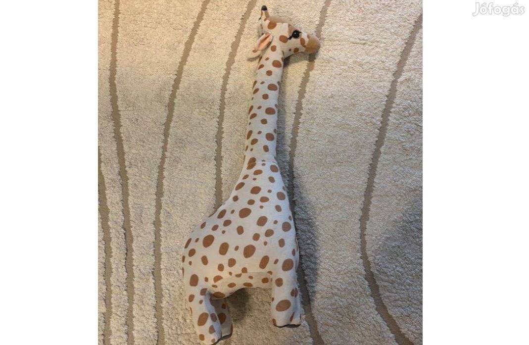 Nagy, puha plüss játékzsiráf rátétekkel és hímzett részletekkel. A zsiráf lábai tömören béleltek, így meg tud állni. Magassága kb. 100 cm, legnagyobb szélessége 35 cm.