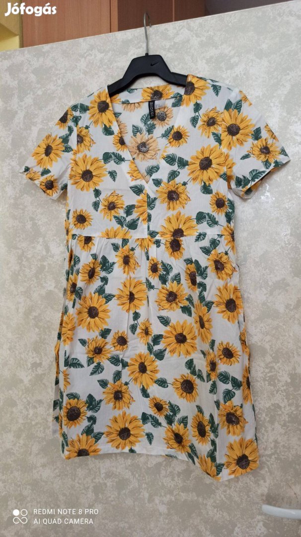 H&M fehér alapon napraforgó mintás vékony vászon miniruha XS-es méretű új állapotú 2800 Ft-ért eladó.