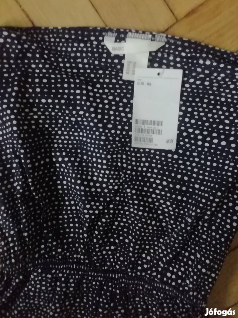 Új, címkés H&M jersey ruha, kék fehér pöttyös, ujjatlan.