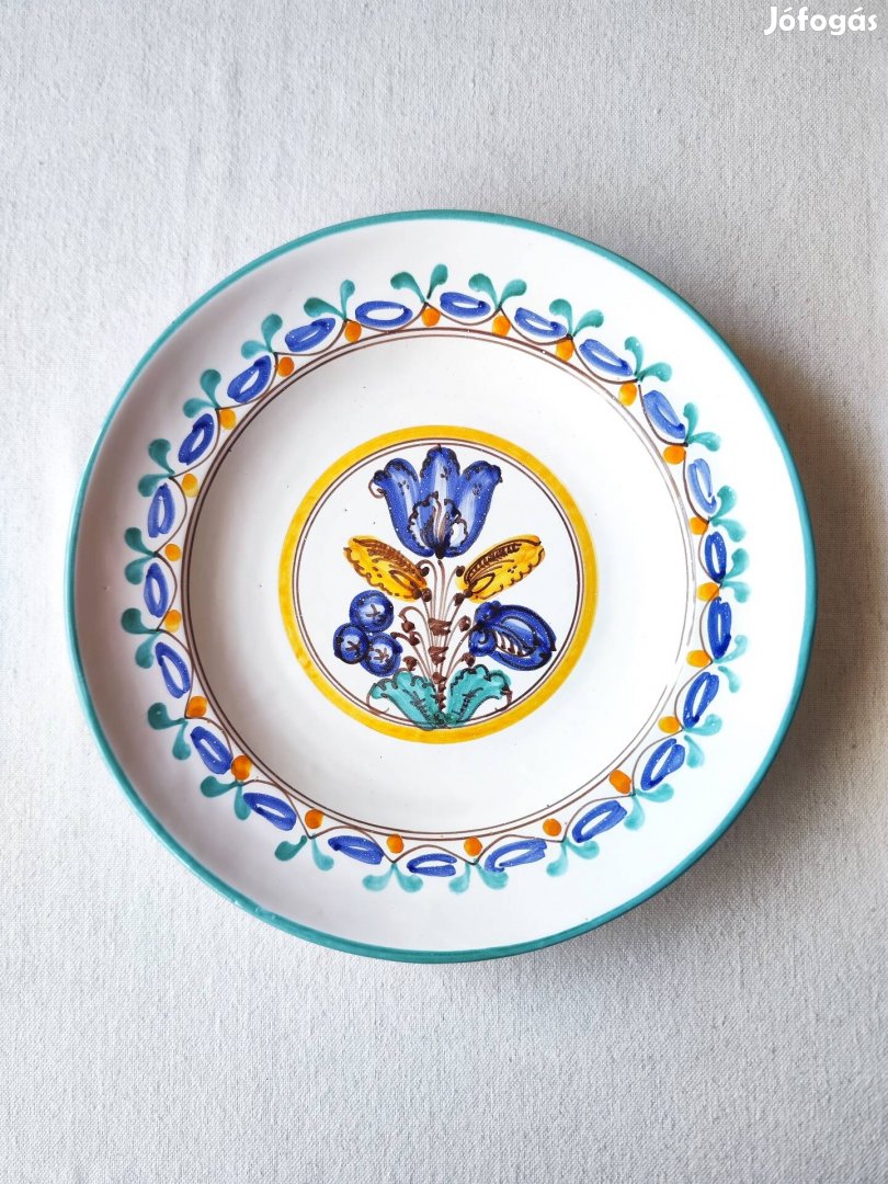 Eladó a képeken látható habán mintás kerámia falitányér.