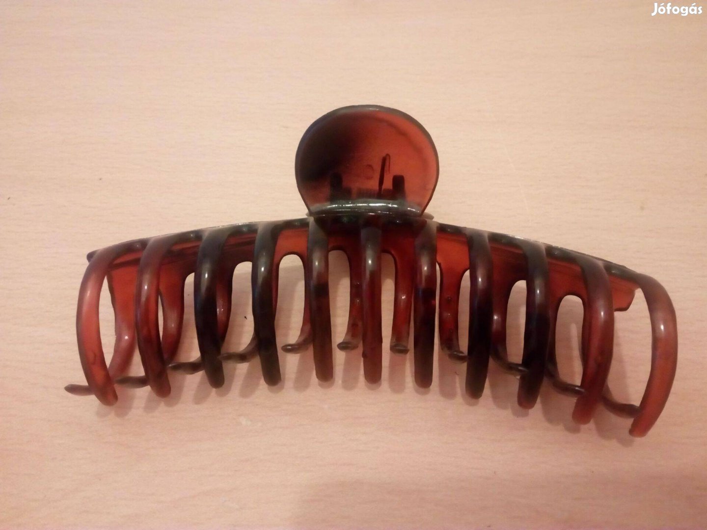 Eladó egy alig használt hajcsipesz (barna, műanyag, 12 cm hosszú, 4 cm átmérőjű).