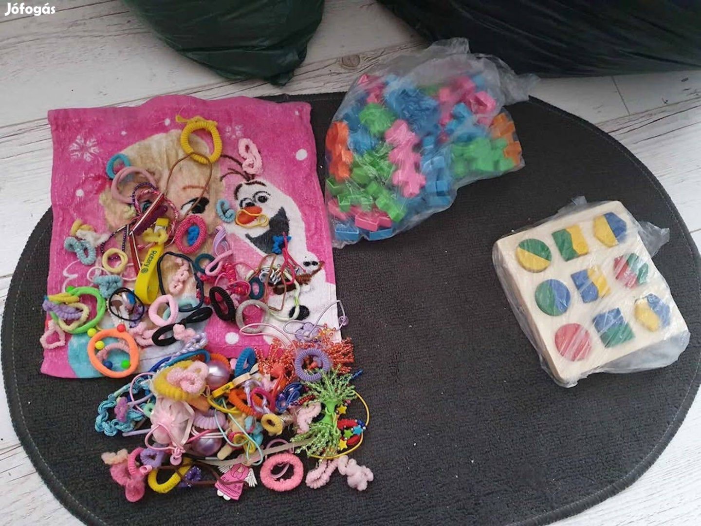 Hajgumi csomag, fa kirakó formák, osszeillesztos építő játék