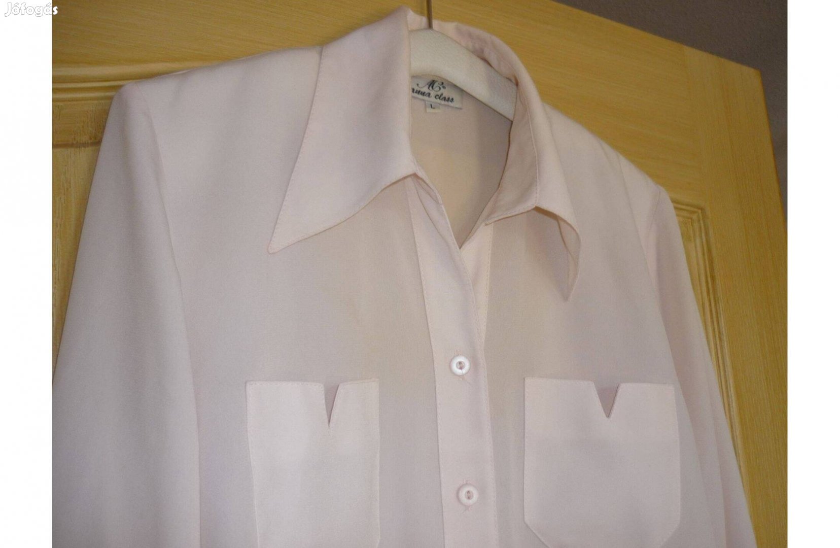 Halvány rózsaszín, 100 % poliészter blúz L méretben, hosszú ujjal, újszerű állapotban eladó. Anna class márka. Vállszélesség 40 cm, Mellbőség 104 cm.