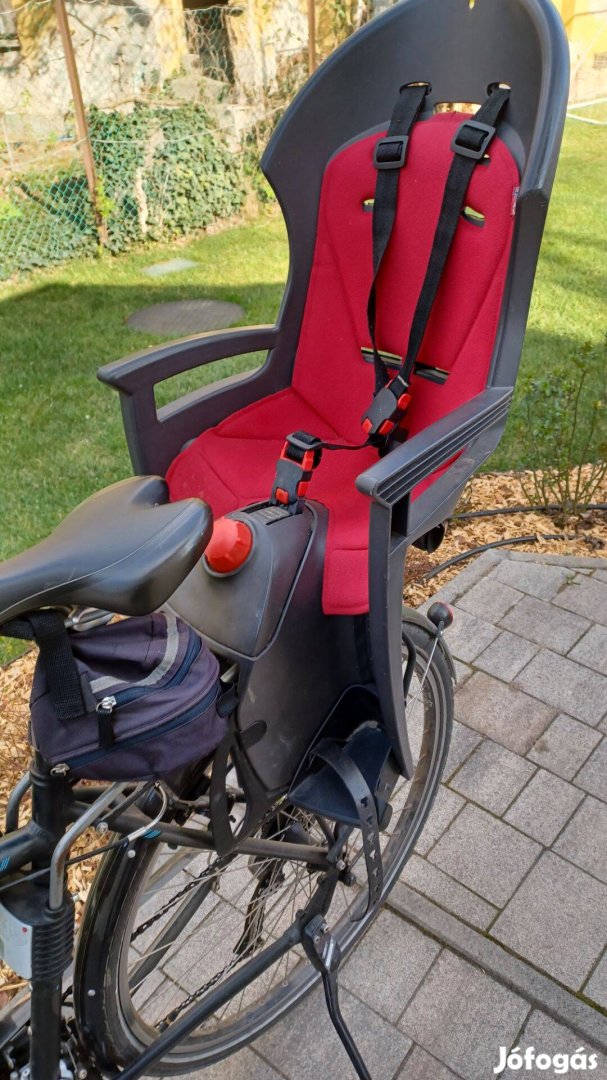 Kerékpár vázra szerelhető,adapterrel együtt.Dönthető háttámlával,amely akár menet közben is állítható,ha elalszik a gyerek.Egy mozdulattal le-és felszerelhető.Levehető,mosható huzattal.