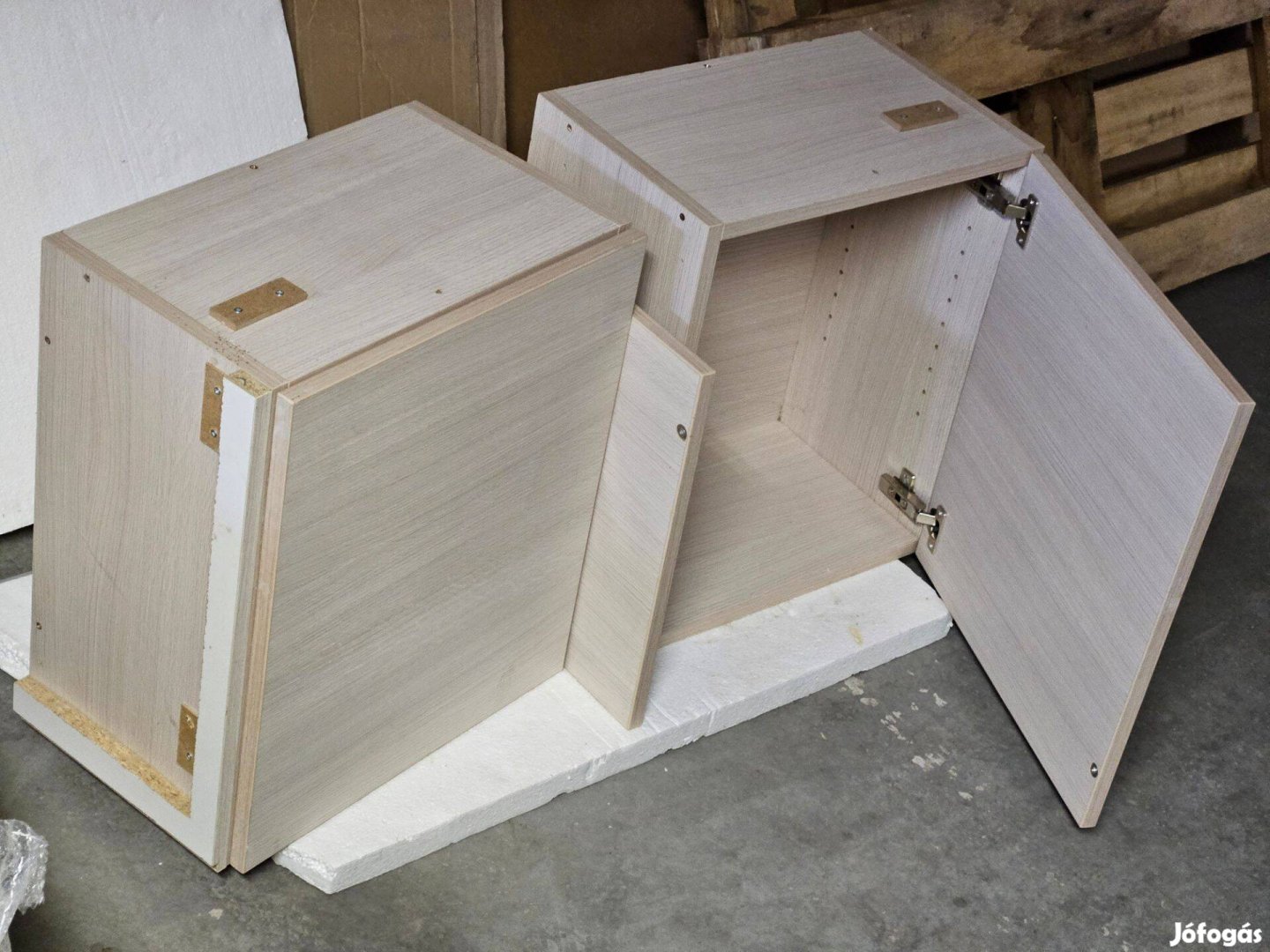 Egyedi méretű beépített szekrény belső polcokkal, lakásátalakítás miatt kibontva. Felül, hátul és oldalt is rögzítve volt. Az ár a kettőre együtt vonatkozik.